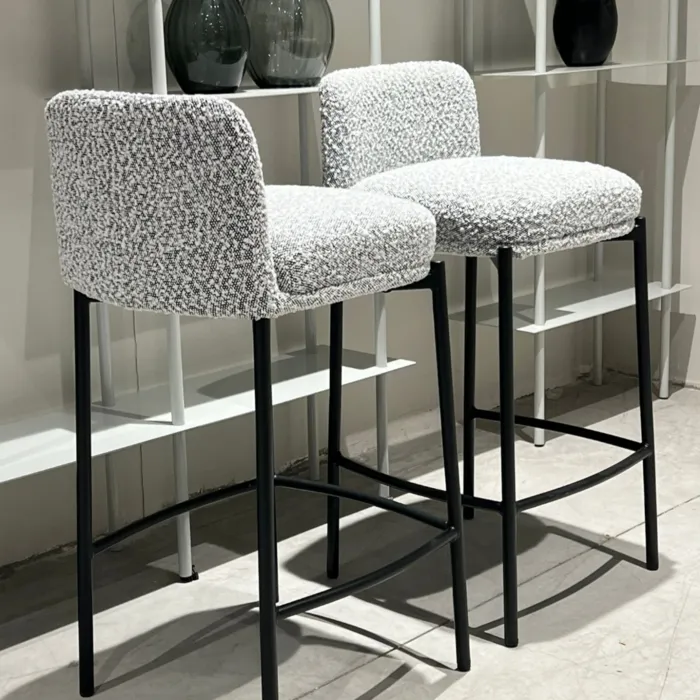 כסא בר מעוצב דגם DOVER בד בוקלה גוון אפור בהיר