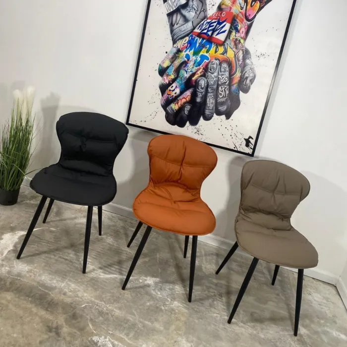 כסא אוכל מעוצב דגם DAN בד דמוי עור איכותי בשילוב רגל שחורה