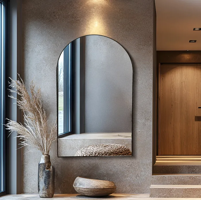 מראה מעוצבת חצי מעוגלת דגם KIARA מסגרת מתכת שחורה דקה