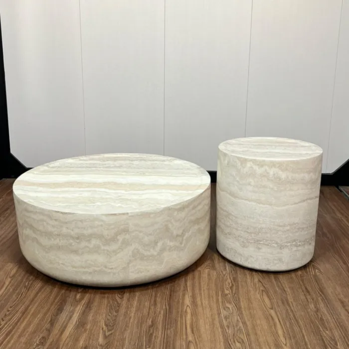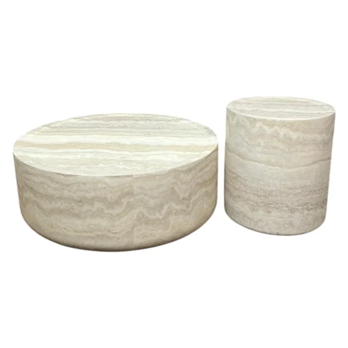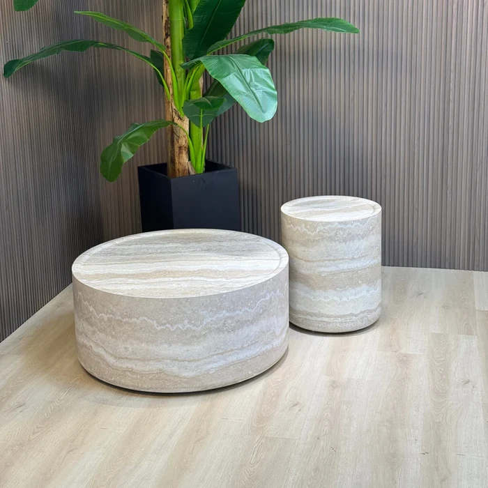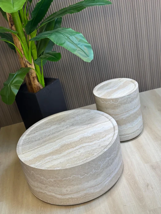 סט שולחנות סלון מעוצבים דגם EXPO בגוון טרוורטין - מידות לבחירה