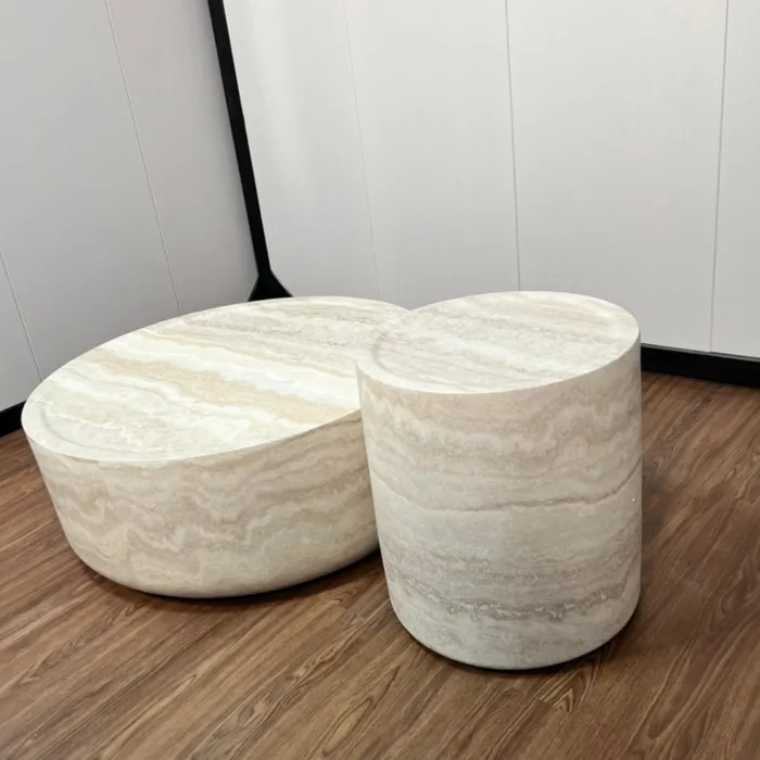 סט שולחנות סלון דגם EXPO דמוי טרוורטין - מידות לבחירה