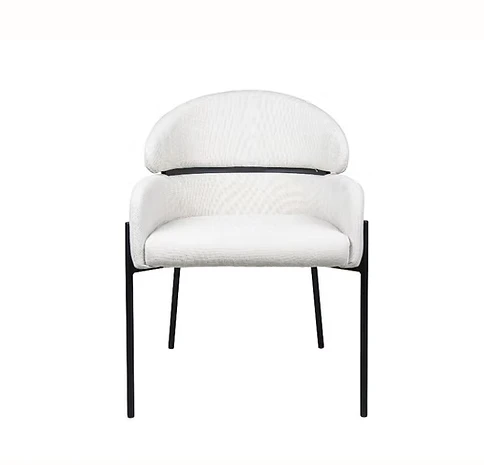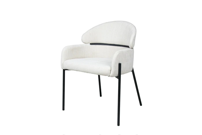 כסא אוכל מעוצב דגם MOR בד בגוון אבן רגל מתכת שחורה