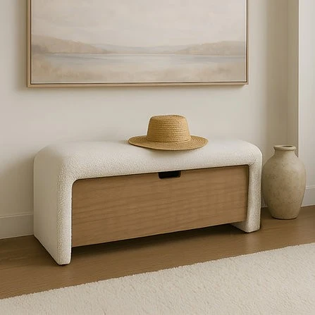 ספסל מעוצב דגם ROCKY בד שמנת כולל מגירה -120 סמ