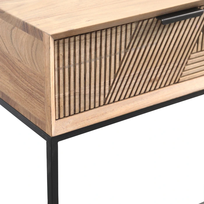 2 מגירות עם חריטות גאומטריות בשילוב רגלי ברזל שחורים