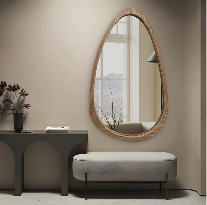 מראה מעוצבת דגם KRID טיפה אמורפית מסגרת עץ - 85*140 סמ