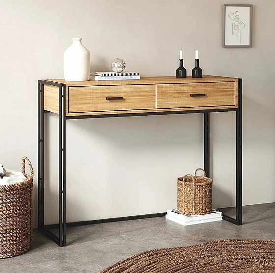 קונסולה כניסה מעוצבת לבית דגם LIOR עץ בשילוב מתכת שחורה