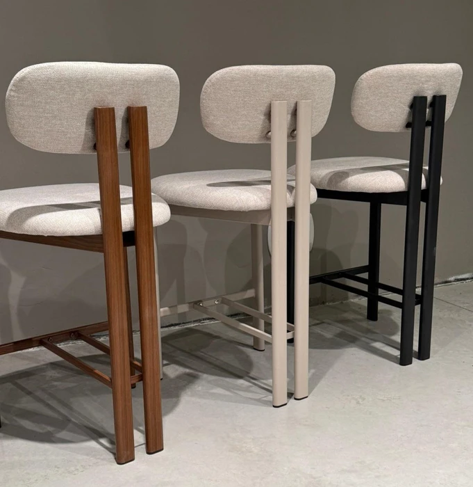 כסא בר מעוצב דגם HUDA מושב מרופד בד גוון אבן טרנדי