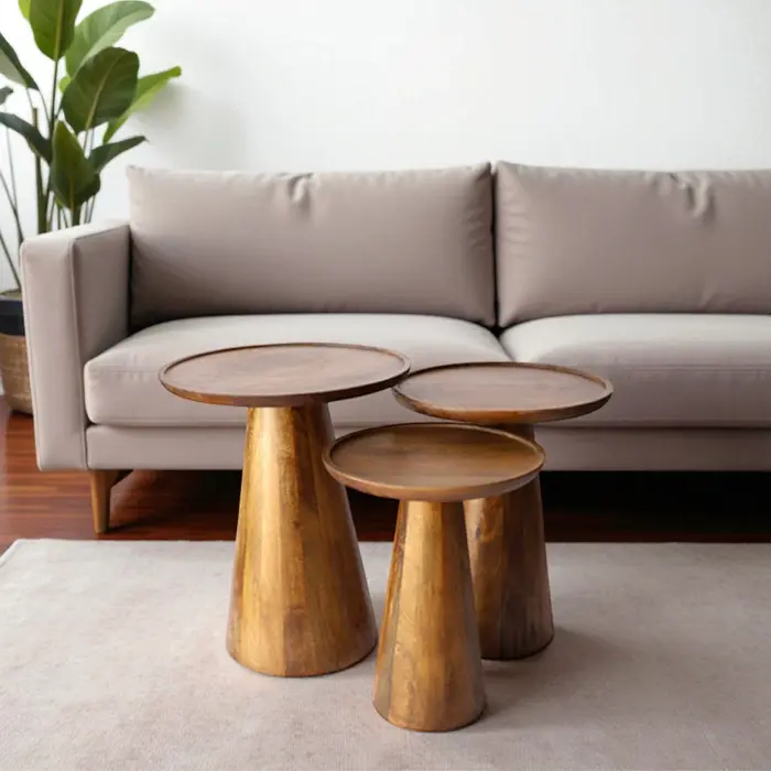 סט 3 שולחנות סלון דגם SEGAL עץ מנגו מלא גוון דבש