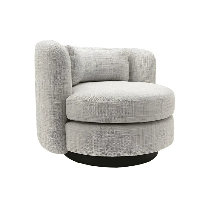 כורסא עגולה מסתובבת מעוצבת דגם SIERRA בד גוון בז' MIX מהמם בעיצוב מודרני ונקי בשילוב בסיס עץ גימור אגוז כהה